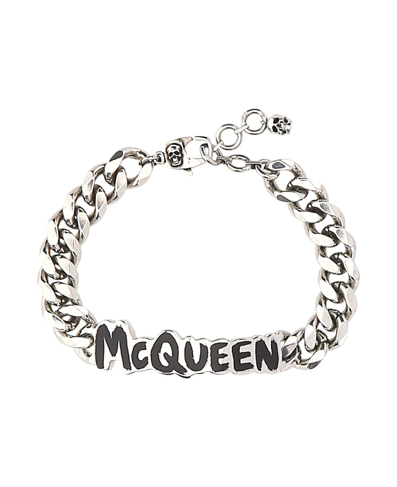 Bracelet realized in silver-tone plated metal enriched by McQueen Grafiti detail. - Adjustable hook closure Composition: Exterior: 100% Brass Finishing color: Silver