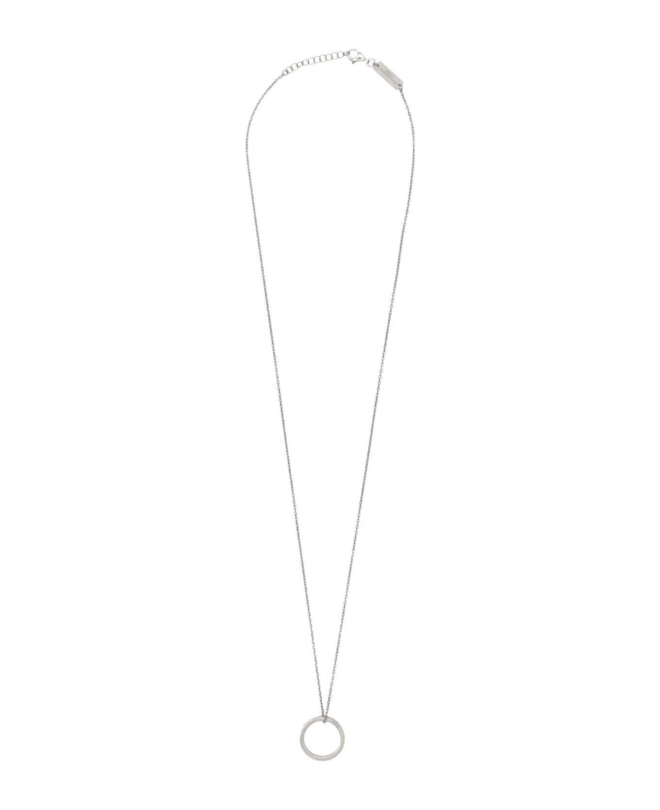 Necklace featuring a pendant hoop with silver logo engraving. Composition: 100% silver