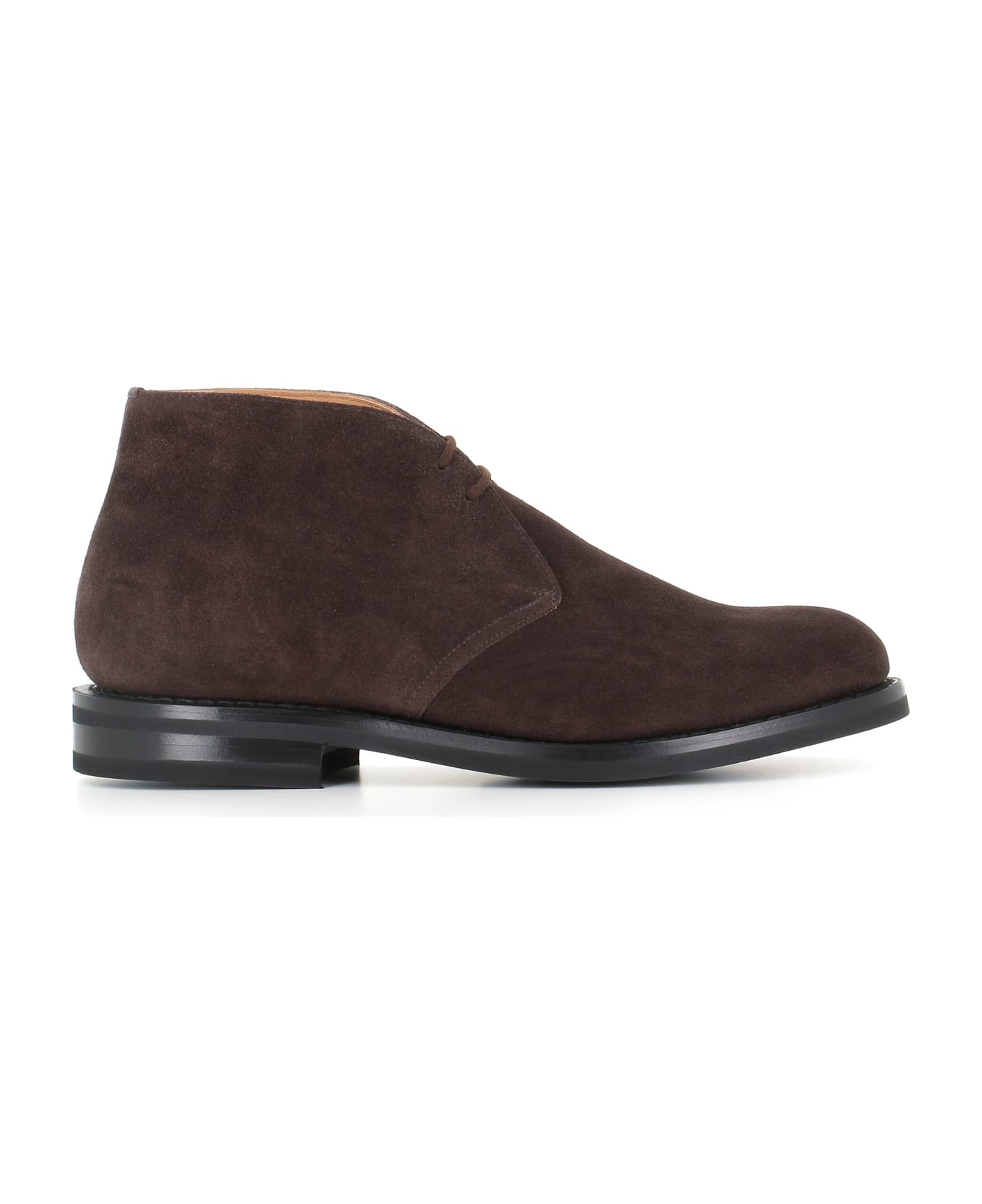 Brown suede man's Desert-boot by Church's. Goodyear artisan manufacturing. Double rubber sole. Lined interior. Shape 81. Heel: 3 cm Composition: Suede