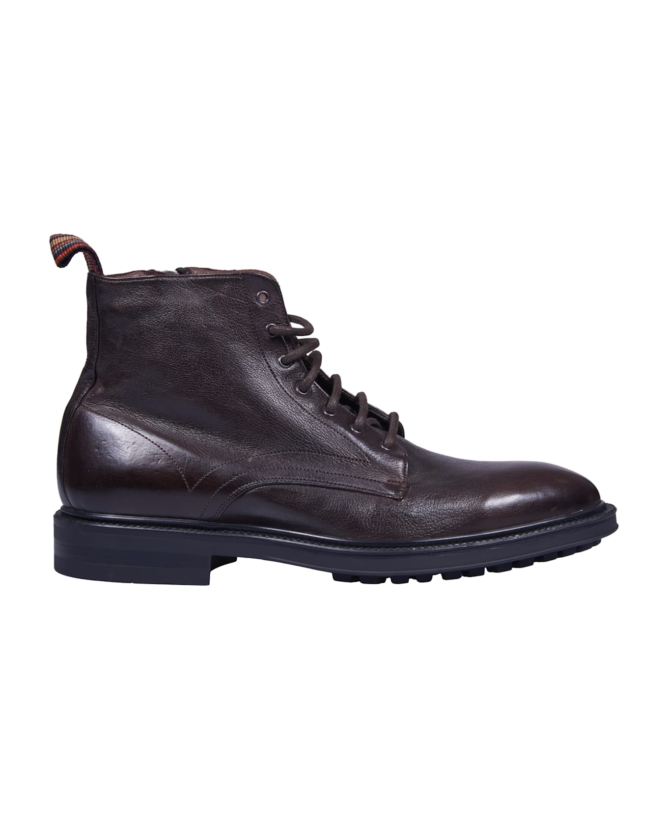 Brown laced Sparrow boot. Side zip. Multicolor detail on the heel. Rubber sole. Total height: 4 cm. Composition: 100% leather. Made in Italy.