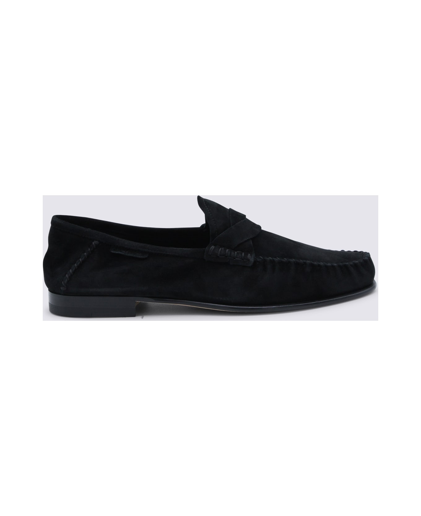 Black loafer from Tom Ford featuring round toe, leather sole, slip-on style and square heel. Composition: _ Cover, 100% Le Sole Le/el
