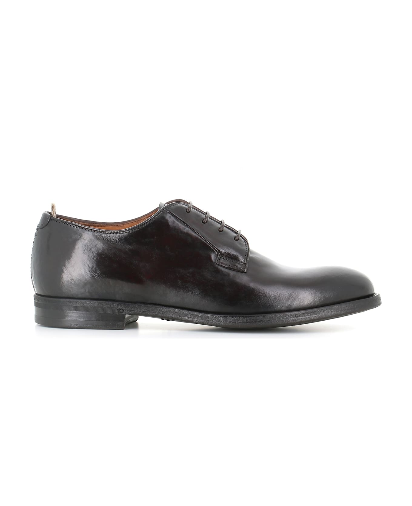 Ebony men's leather Derby by Officine Creative, featuring by age-old effect made by to washing treatment. Caoutchouc sole. Lined interior. Heel: 2 cm