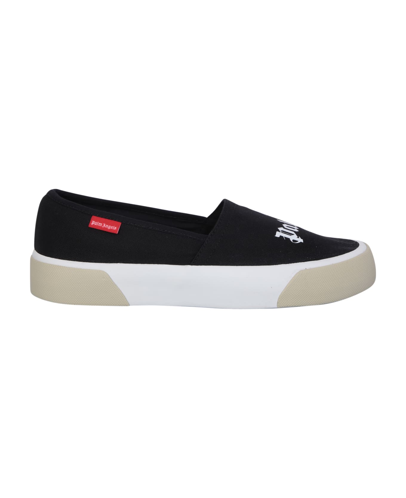 Roundtoe. Logo print to the front. Contrasting logo. Slip-on style. Branded insole. Rubber sole. Color: black