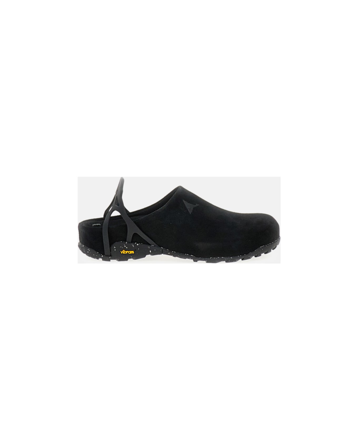 Hybrid shoe with a suede leather upper. Slip-on design with an asymmetrical toe structure for an ergonomic fit. Structured heel support. Vibram® Ecostep sole. Debossed ROA logo on the side. Color: black. Composition: 95% Calf Leather, 5% Tpu