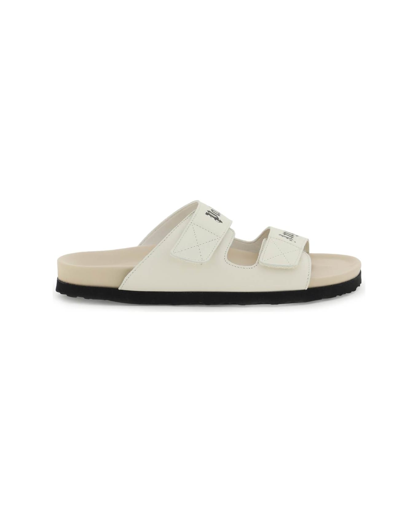 Slides by Palm Angels made of leather with Velcro strap closure with contrasting printed lettering logo. Anatomical leather footbed and rubber sole. Composition: 100% leather