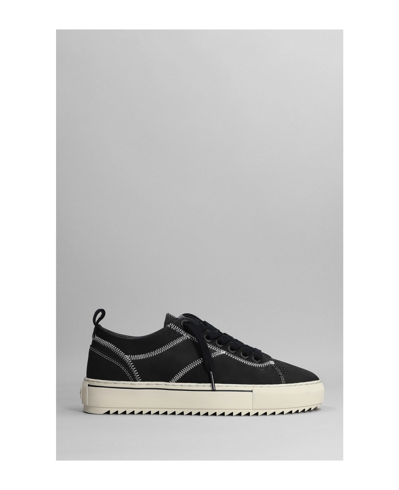Alpha low Sneakers in black nubuck, laces, contrasting stitching, logo on tab, rubber outsole, 100% nabuk, Made in Portugal