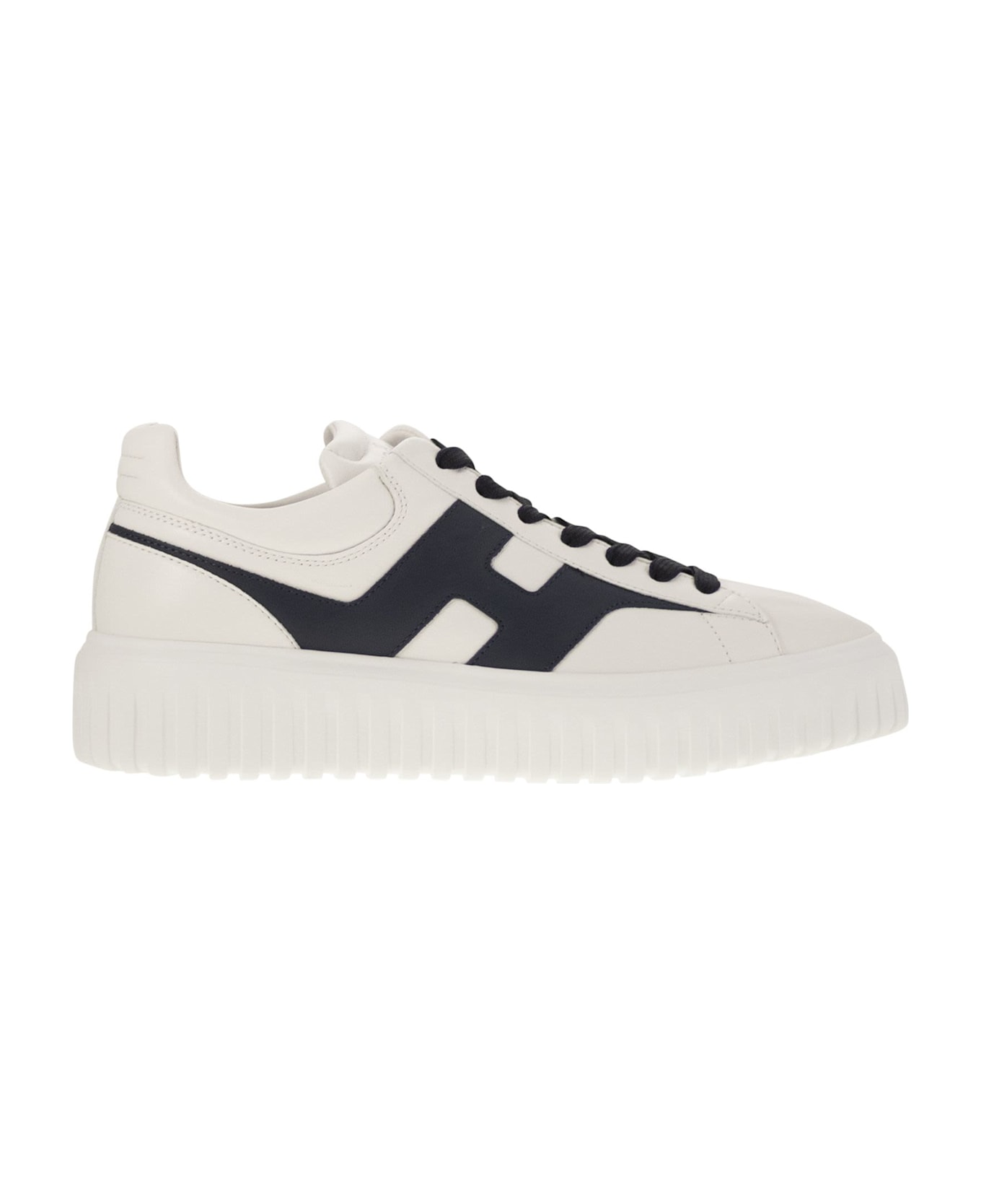A new model with sporty and versatile lines, the H-Stripes trainers feature an extra-light sole with vertical stripes. The upper, with a compact and balanced design, is distinguished by an H that extends across the entire side. The upper, with stitching on the heel, has soft padding. This version is made of nappa leather and smooth leather, with a memory foam insole that provides cushioning. - Hogan H-Stripes men's trainers - Made in Italy - Nappa leather upper - Side H in smooth leather - 8 mm memory foam insole - EVA sole - Fabric pouch included - Includes an additional pair of laces DESIGNER ID: HXM6450FE91QZB11G1