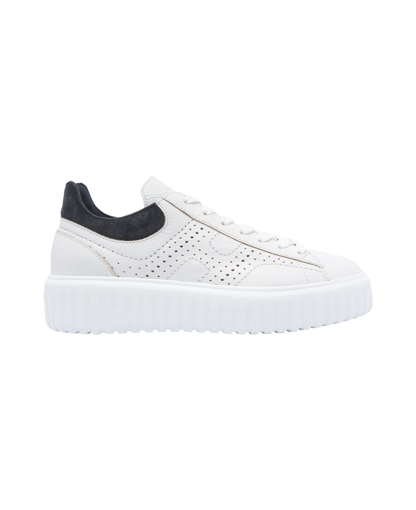 Hogan white H-Stripes sneakers, leather upper, laces closure, round toe