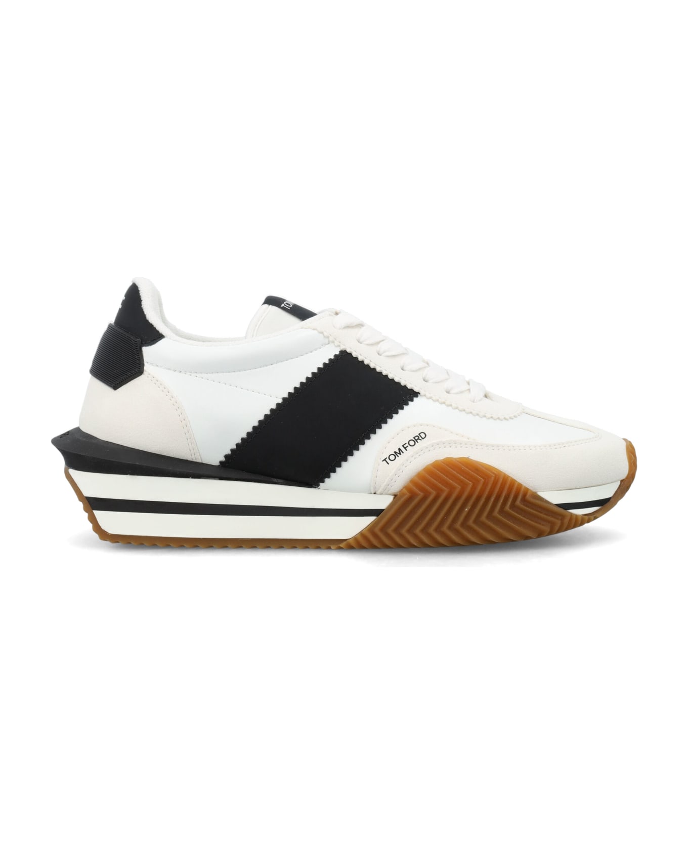 James Sneaker By Tom Ford. Featuring: Low-top Padded Collar And Tongue Contrasting Label At Tongue Round Toe Suede Details Contrasting Side Stripe Black And White Sole