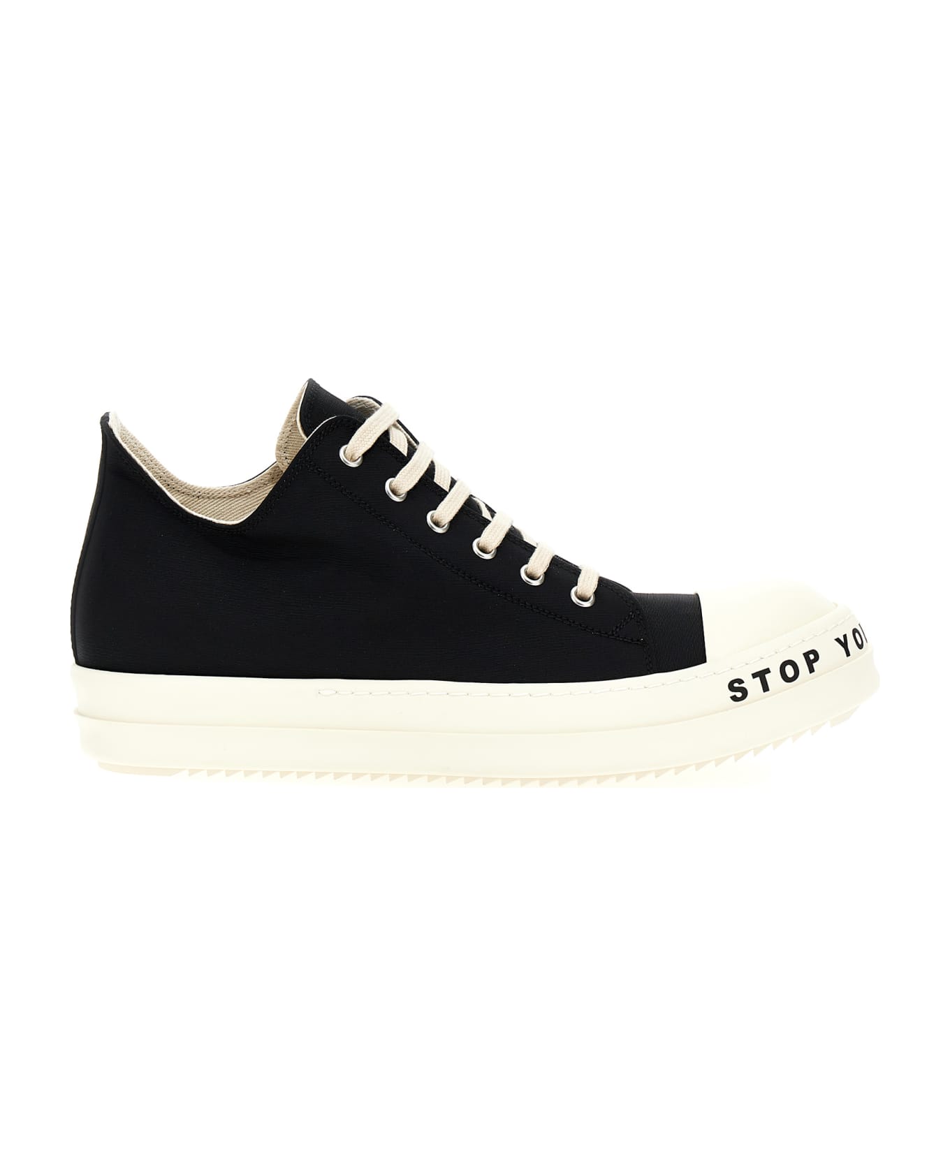 Low Sneaks' canvas lace-up sneakers, with rubber sole and toe, a print on the front of the toe cap. Composition: