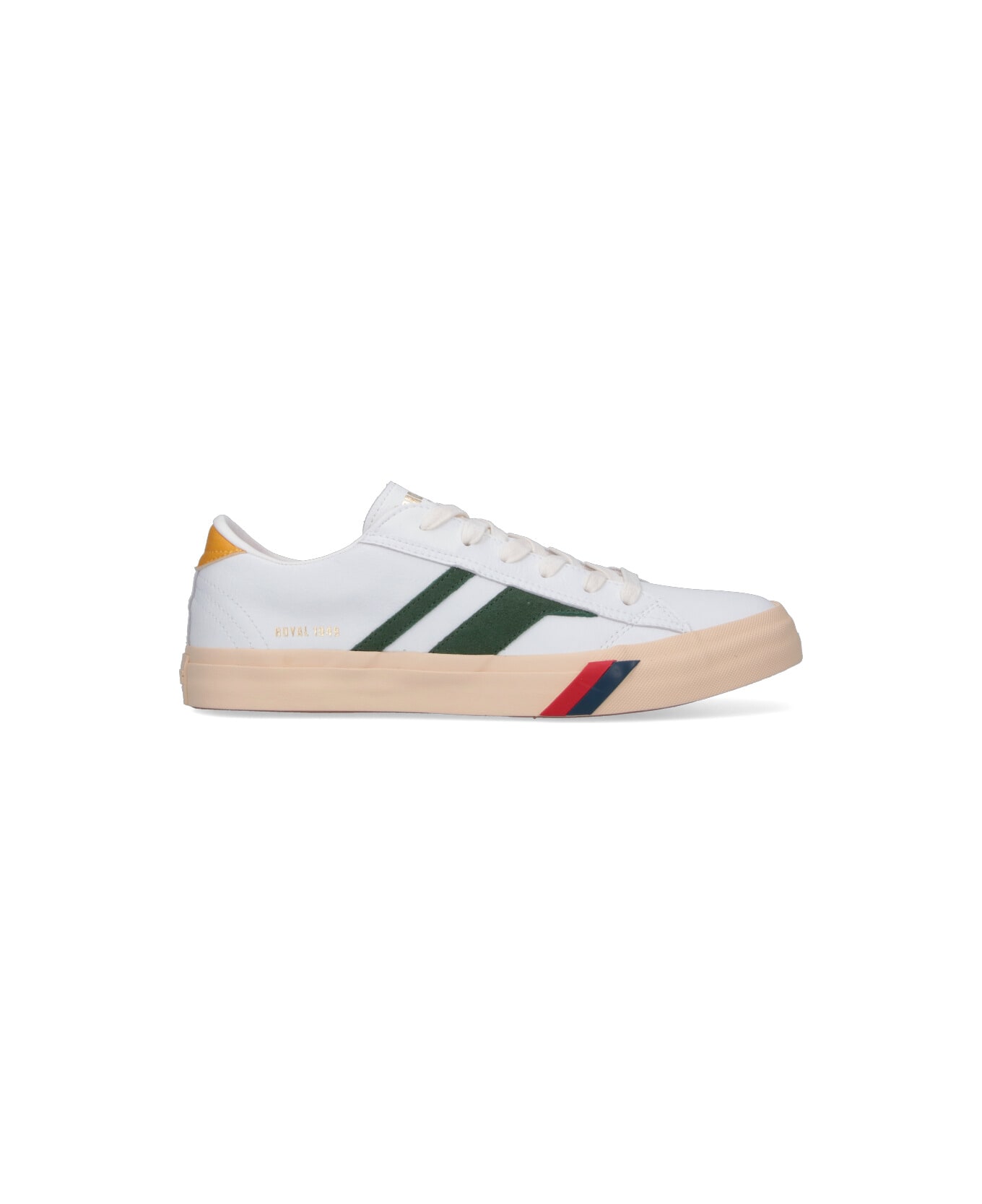 Sneakers "Royal Classic" Pro-Keds 1949, in white leather, round toe, lace-up closure, gold logo print on tongue, contrasting side finishes, side logo print, contrasting back tab, rubber sole.