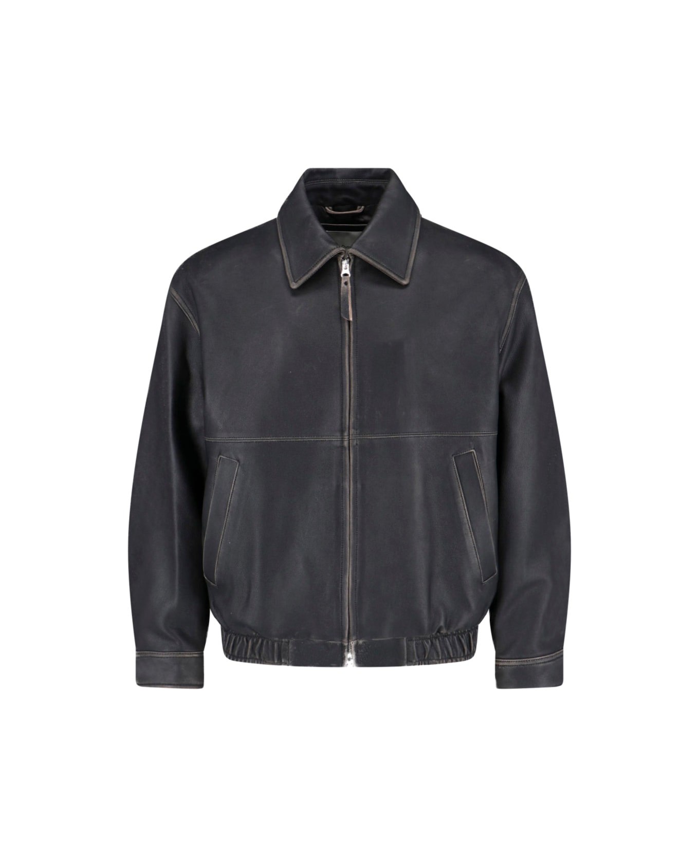 Black Dunst lambskin bomber jacket with ususred effect, collar, zip closure, long sleeves, two slanted front embosses, stylized trim, straight hem. Composition: 100% Lambskin