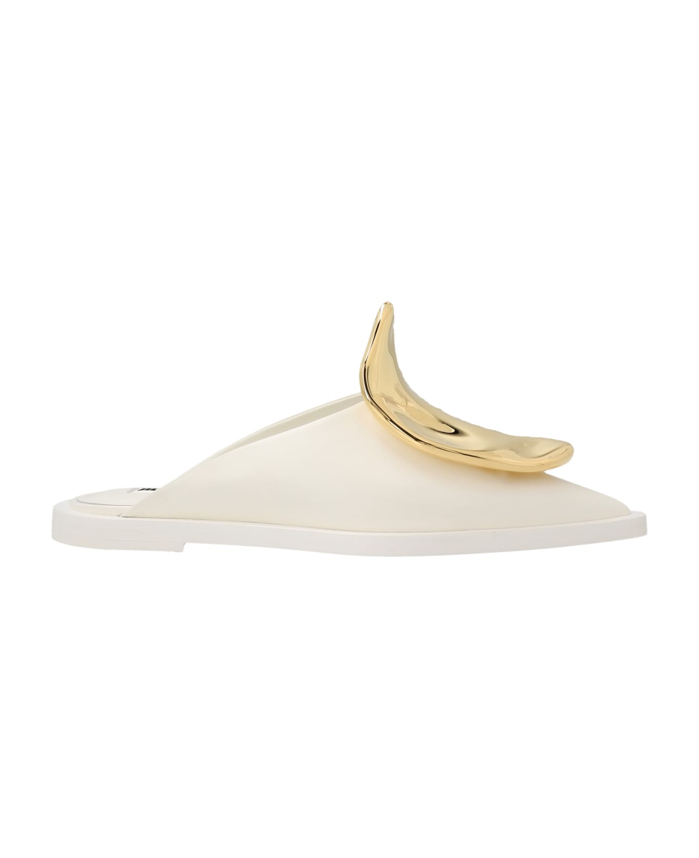 Pointed toe leather mules with a maxi front gold detail and a leather sole. Footwear made using materials and craftsmanship featuring high quality and finesse. Composition: 100% leather