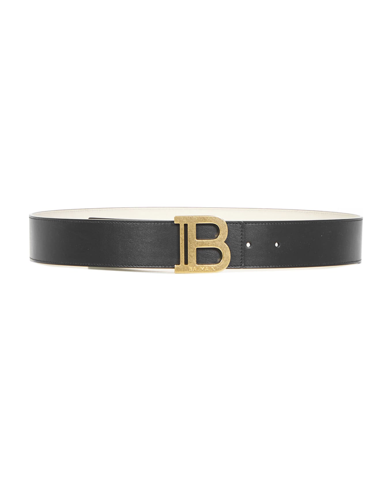 Adjustable closure with monogram metal buckle with golden finish, Balmain logo engraved on the buckle