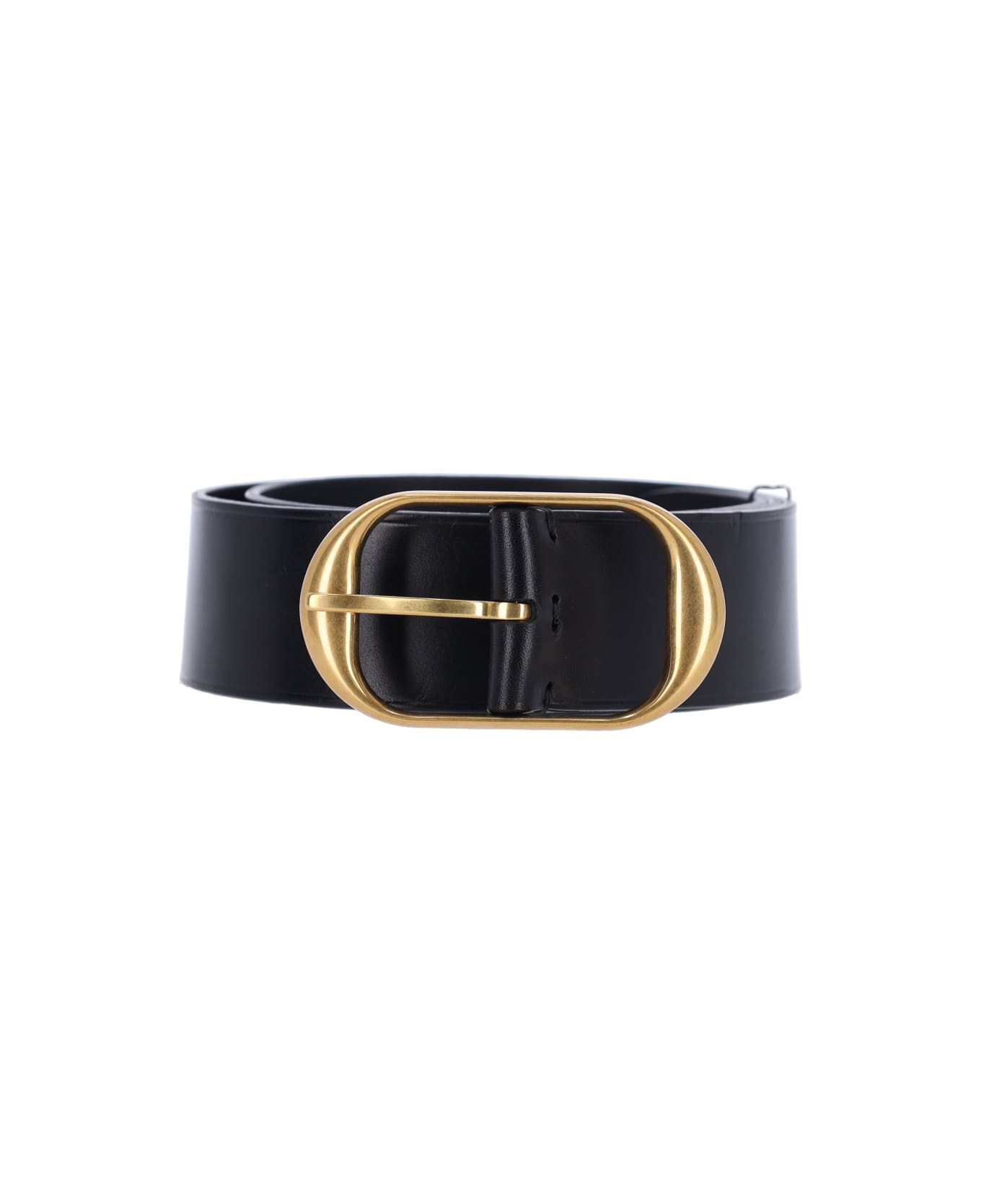 Nili Lotan 'Nili' belt in black leather with gold metal buckle at the front, adjustable.