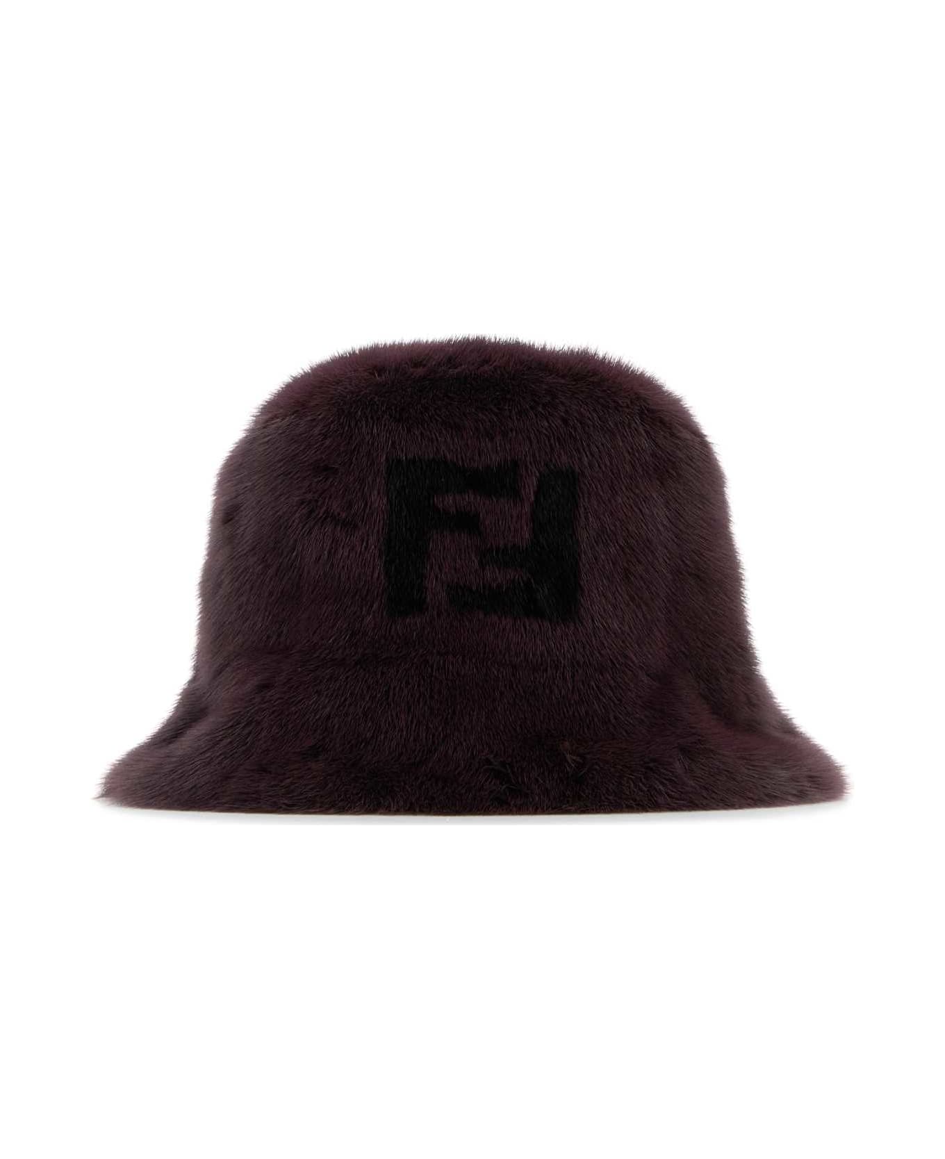 Burgundy Mink Bucket Hat from Fendi