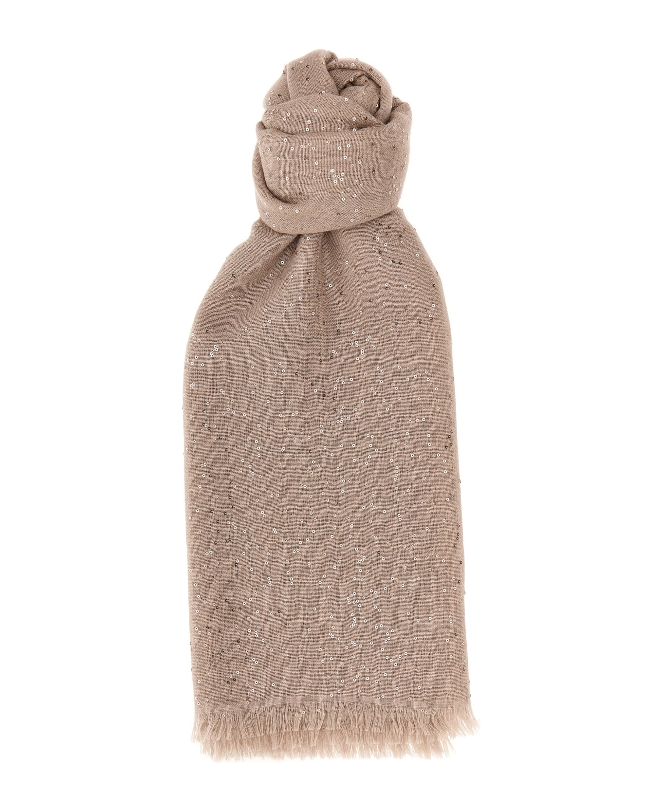 Cashmere and silk scarf, sequin appliqué, fringes at the edges. Composition: 70% cashmere 30% silk