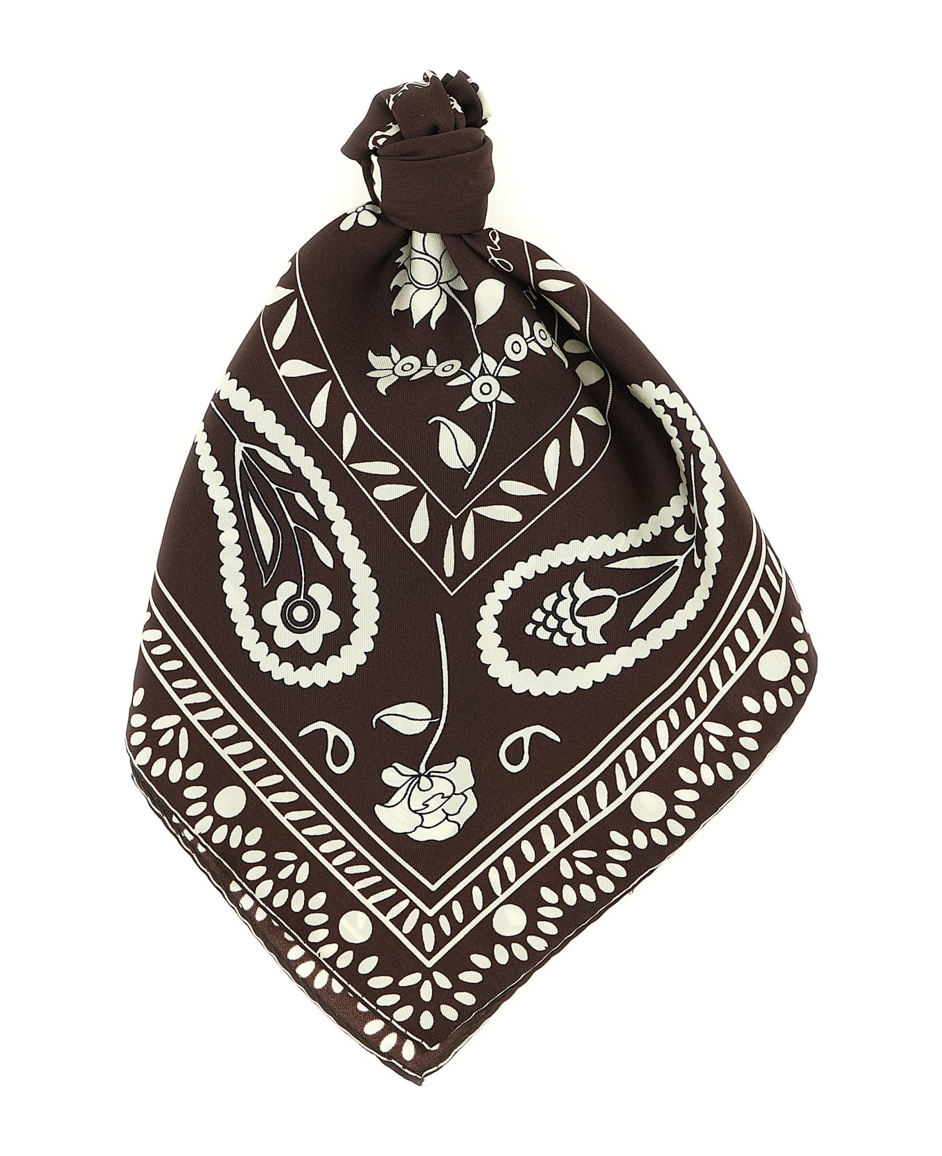 Patterned silk scarf.