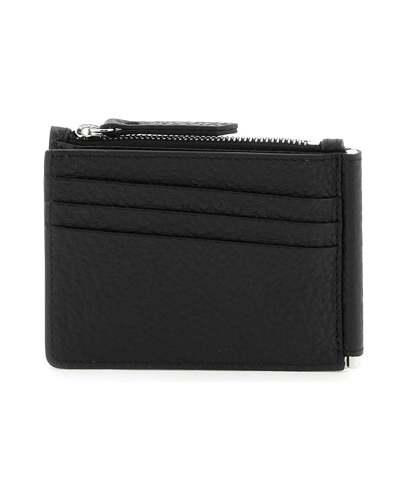 Maison Margiela credit card holder crafted in grained leather with three front slots, a back zipper pocket and money clip. Iconic Four Stitches on the back. Composition: 100% bovine leather