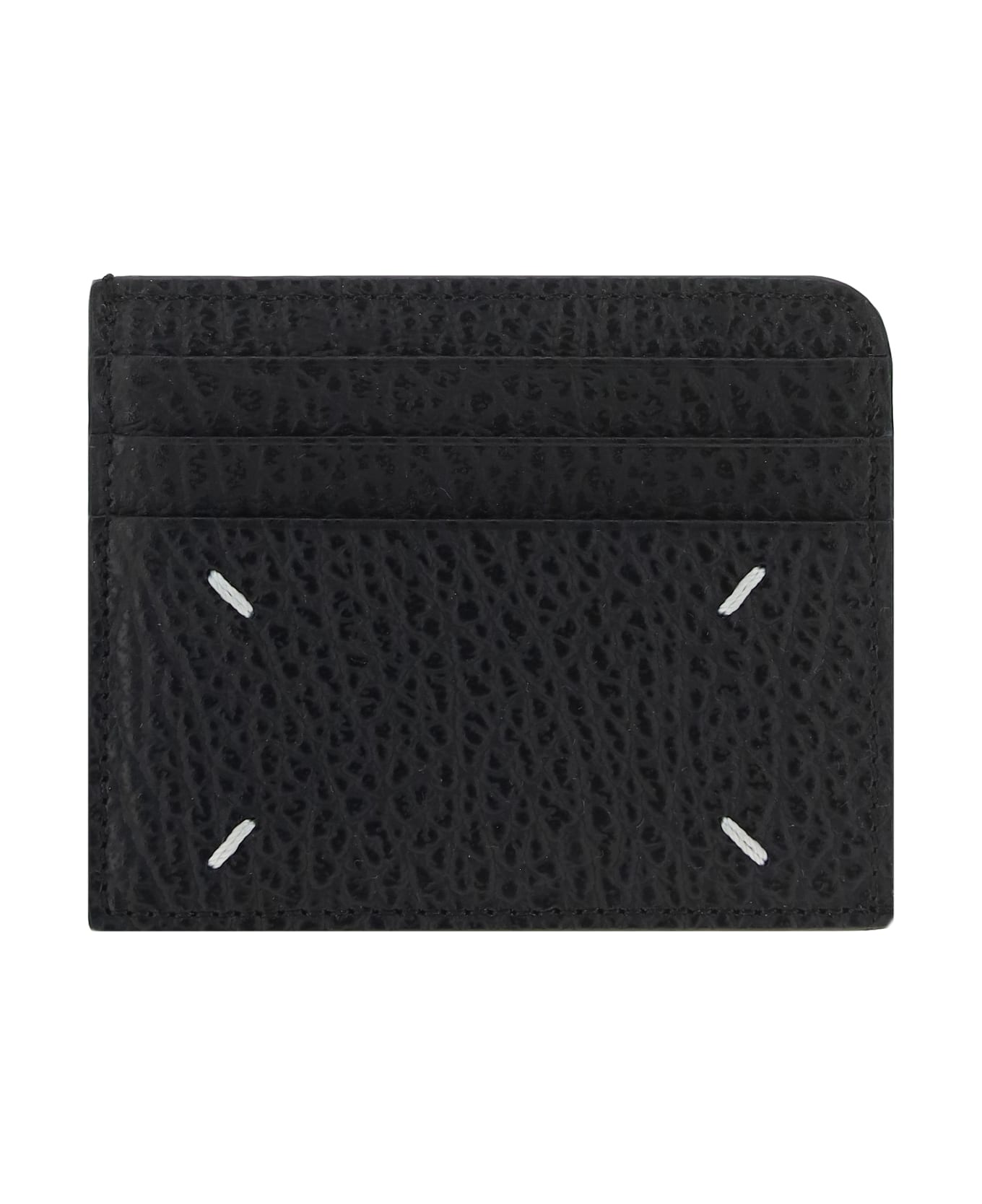 Calfskin card holder by margiela, grained leather design, card slots on front and back, iconic brand embroidery contrasting on front. Composition: 100% % Calf Leather Bos Taurus