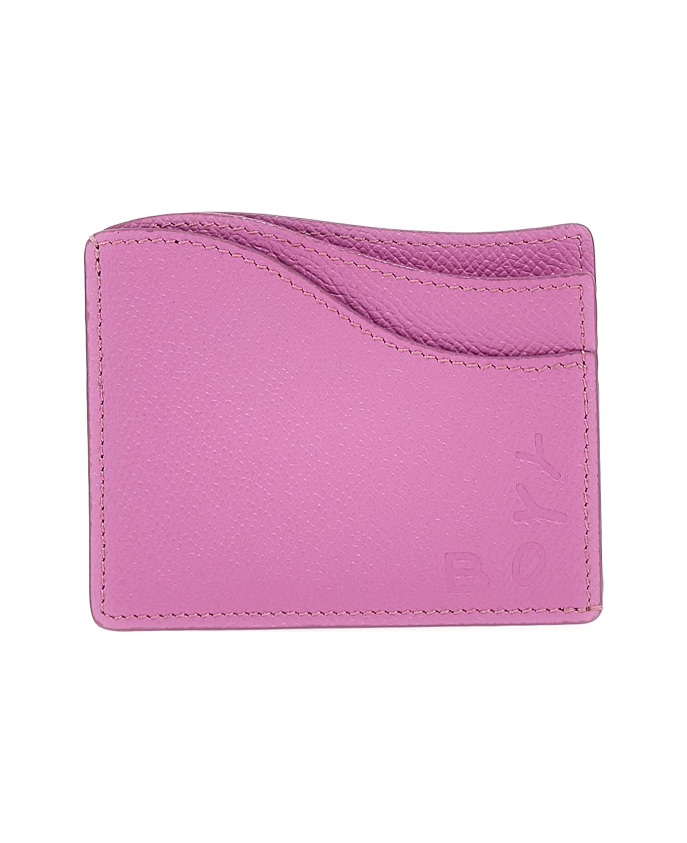 Portacarte 'Folder Espom' in pelle granata, logo embossed frontale. Composition: