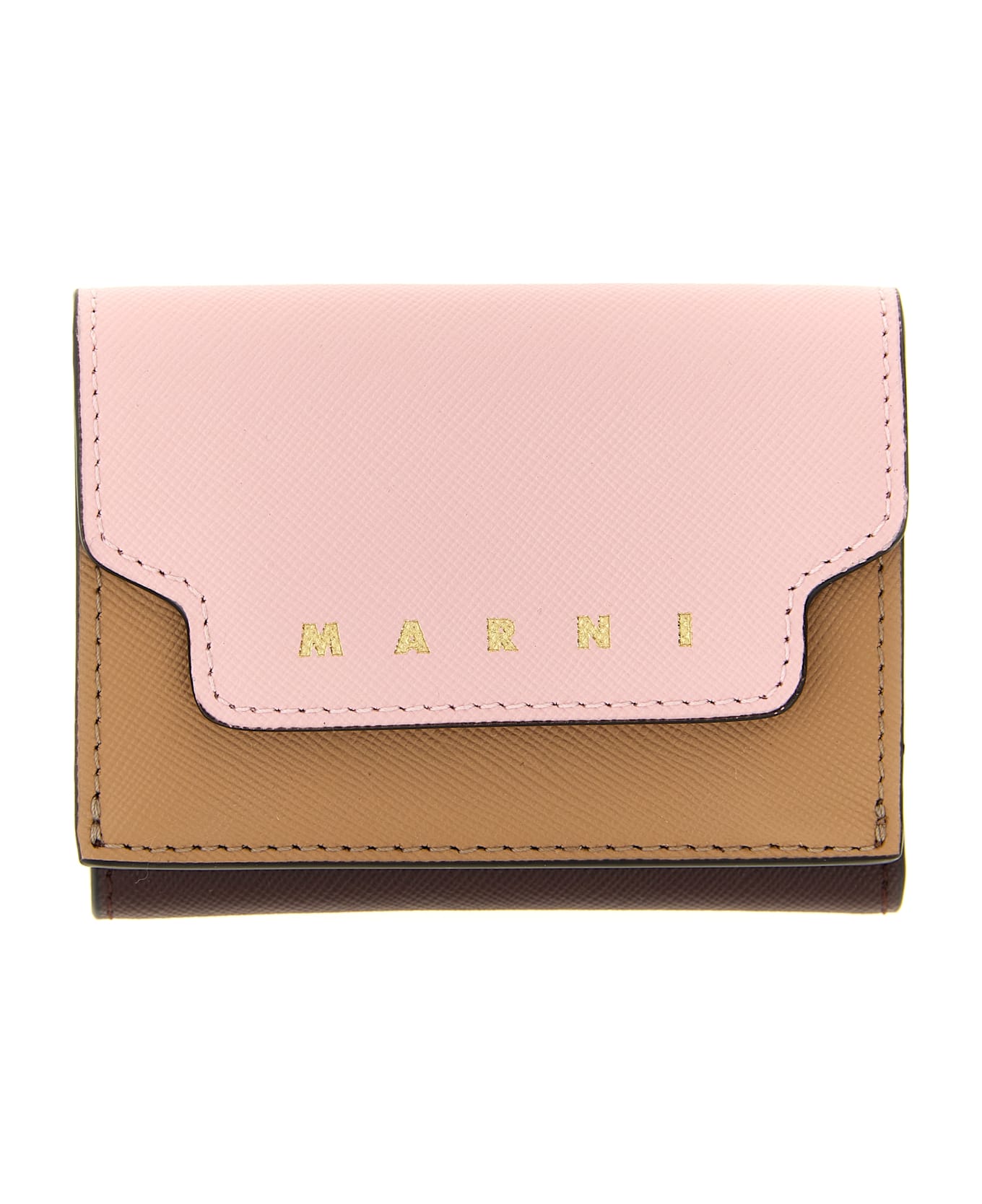 Saffiano leather wallet, trifold model with double flap closure with snap button and front embossed logo. Composition: 100% calfskin leather (Bos Taurus)