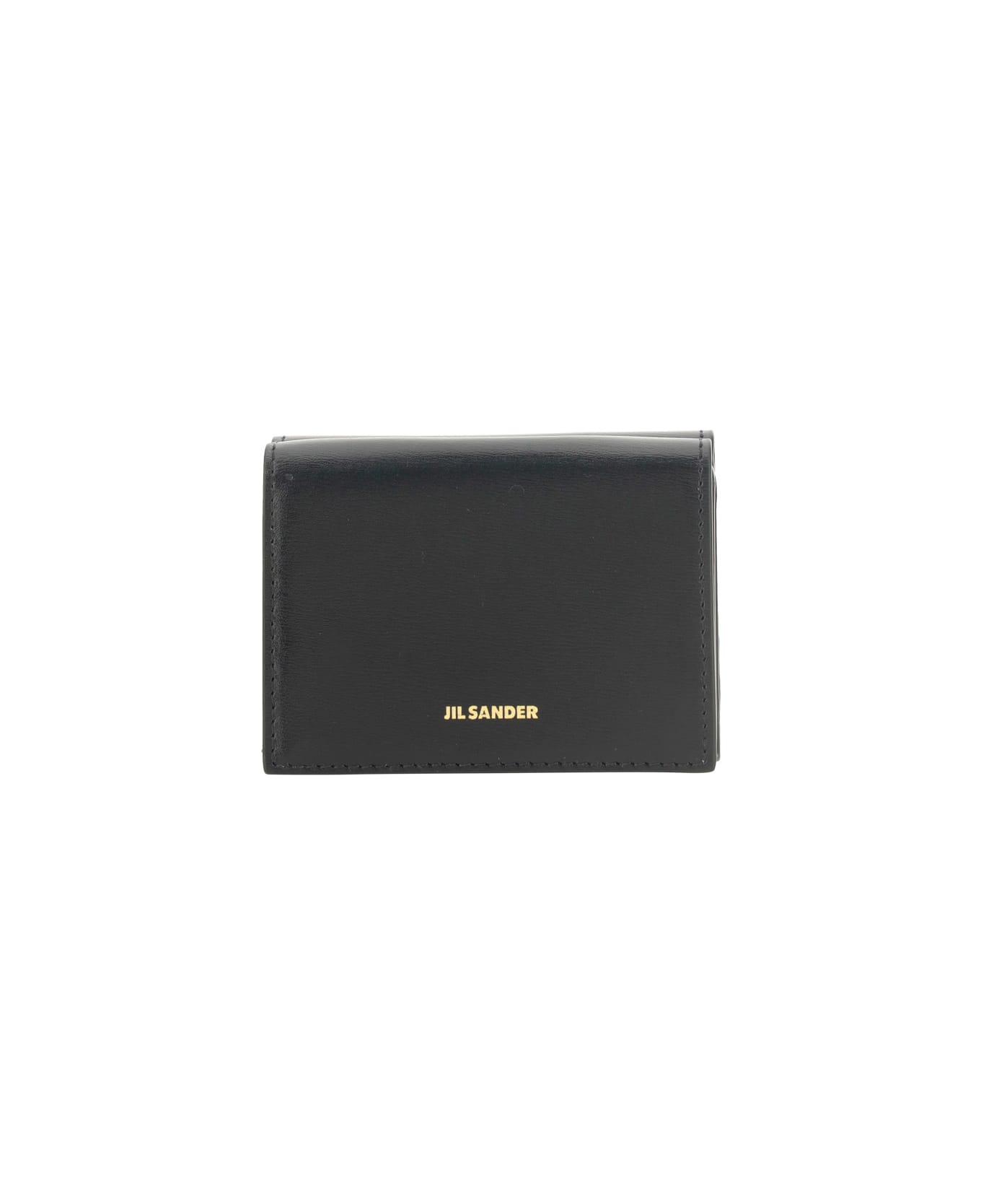 Calfskin wallet by jil sander, smooth leather design, trifold pattern, card slots inside, side coin compartment with snap button, bill compartment, iconic brand monogram printed in contrasting pressure on front. Composition: 100% % Calf Leather Bos Taurus