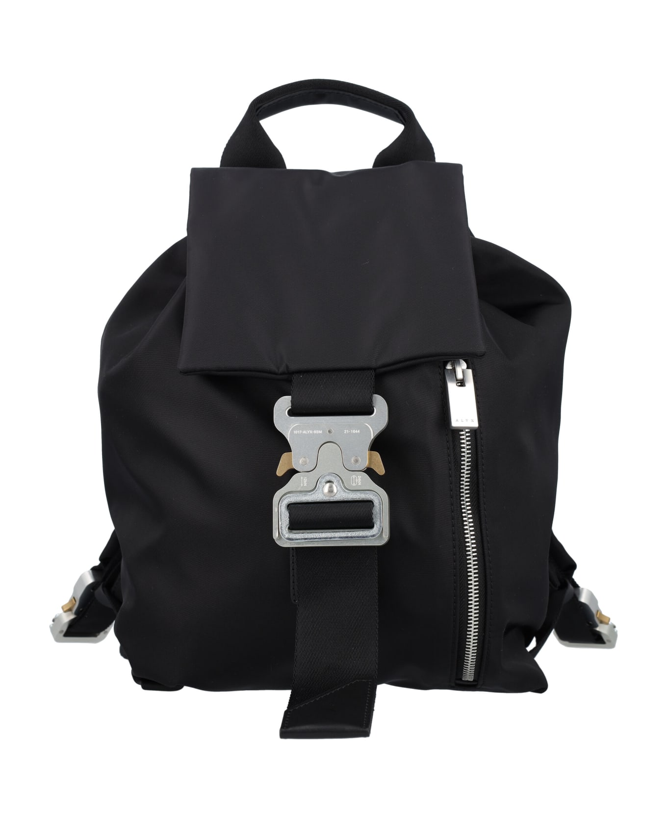 Black Nylon Classic Tank Backpack By 1017 Alyx 9sm. Featuring: - Drawstring Closure - Classic Metal Rollercoaster Buckle And Strap Detailing - Zip Detail At Front - Top Handle - Two Adjustable Shoulder Straps With Iconic Buckles - Main Compartment - Inner Zip Pocket And Flat Pockets