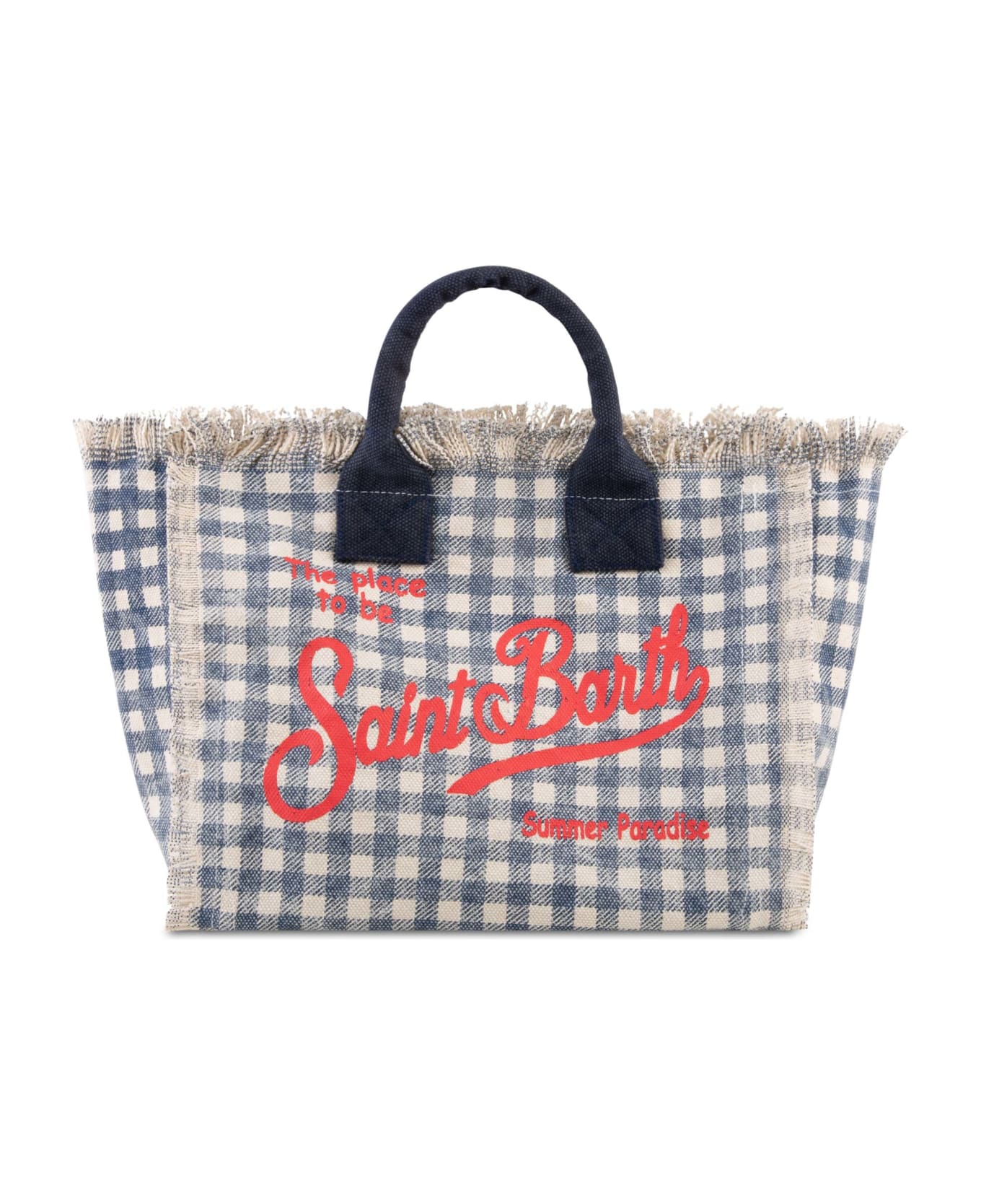 Blue and white gingham canvas fringed handbag Saint Barth logo Inner flap with metal zip Inside pocket with zip Sizes: 26 x 14 x 23 cm Composition: 100% cotton