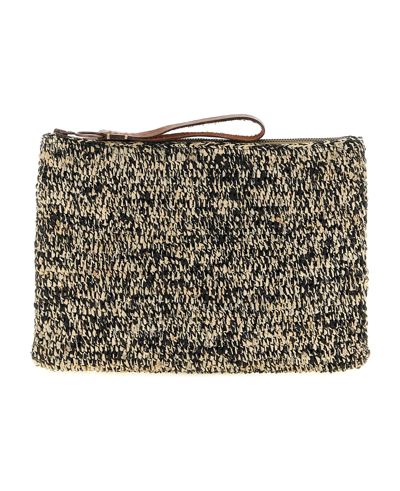 'Ampy' clutch bag in two-tone crochet raffia, leather handle, zip closure. Handcrafted product, any imperfections are to be considered characteristics of uniqueness. Composition: 100% raffia