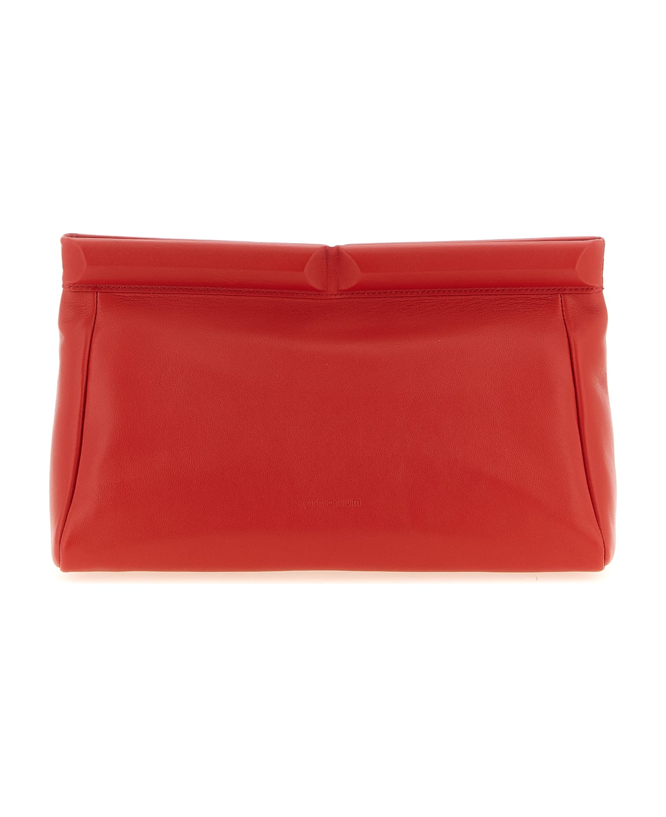 'Eloisa' lamb nappa clutch with front embossed logo, folded magnetic closure, rigid bottom with handle.