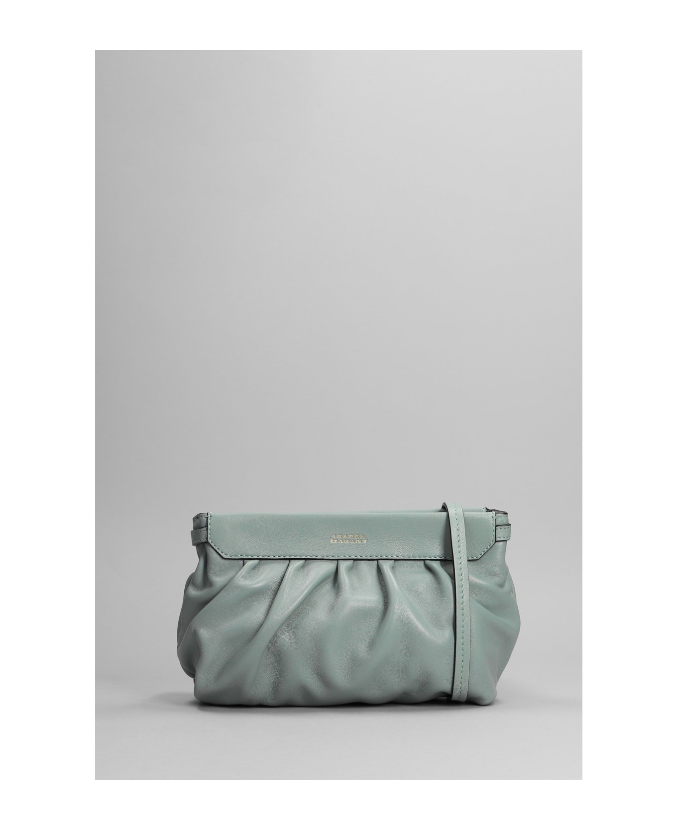 Luzes Clutch in green leather, zip clousure, Wristlet, shoulder strap, 100% leather, Made in Tunisia, Height 140 mm, Width 240 mm