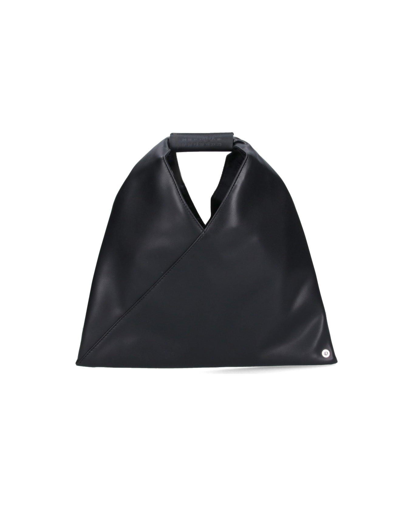 MM6 Maison Margiela 'Japanese' bag, black colour, top handle, front logo detail, iconic white stitching on back. Autumn Winter 2022 2023, women's bag. Composition: 60% Polyester, 40% Polyurethane