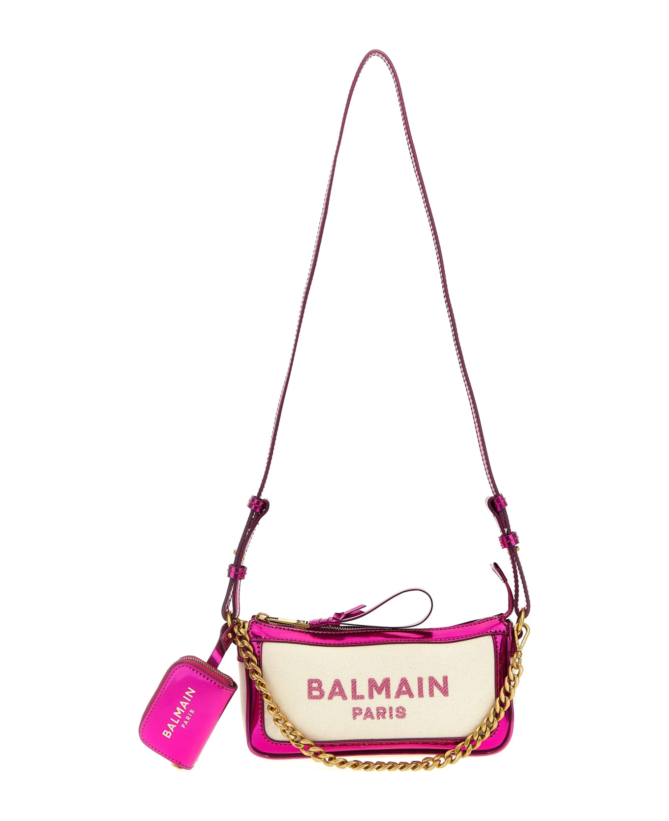 'B-Army' canvas clutch bag with leather details, logo embroidery, zip closure, chain handle, adjustable and removable leather shoulder strap, and card pouch. Composition: 100% cotton