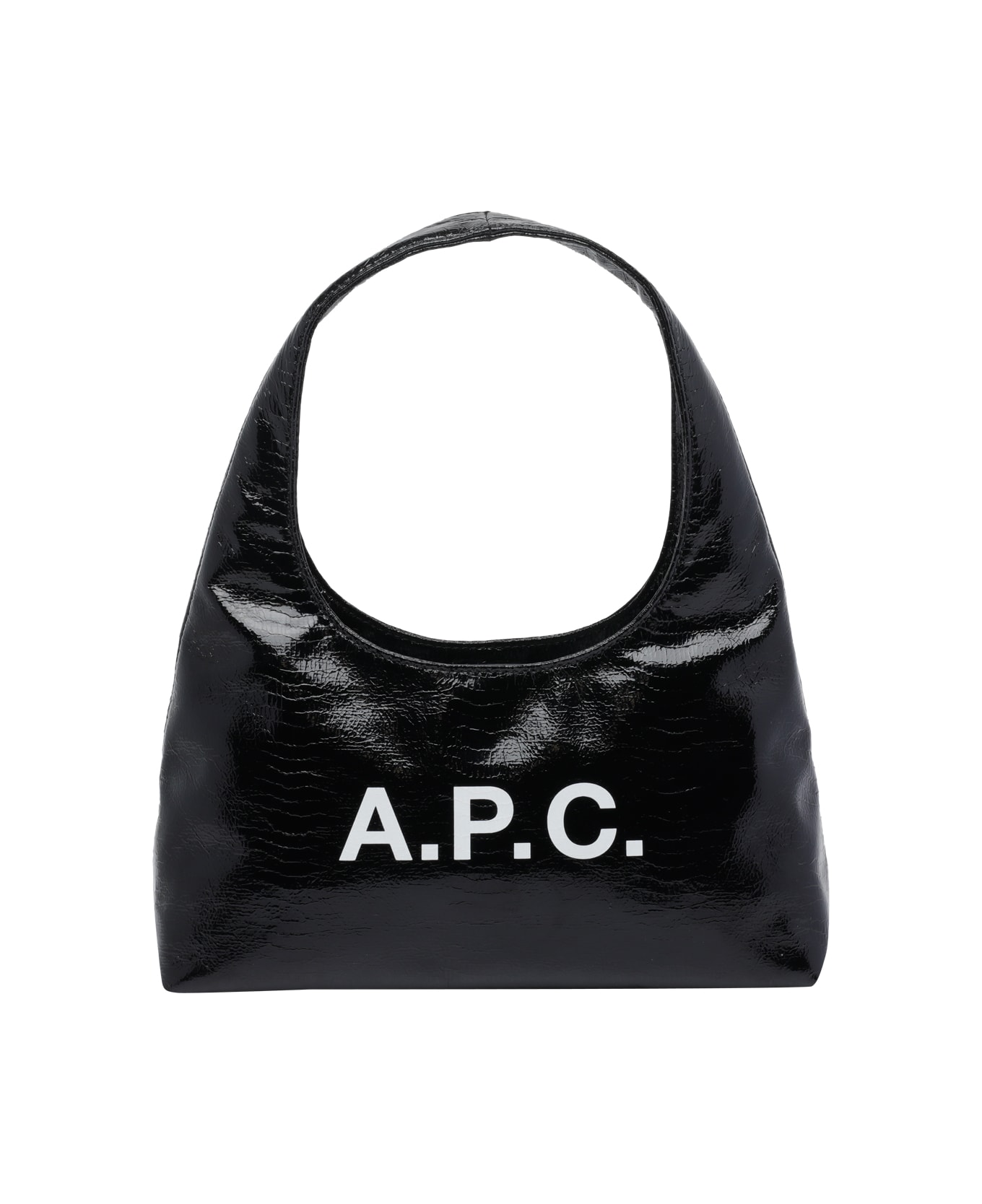A. P. C. black Baby Ninon shoulder bag, magnetic closure, inner open pocket, frontal logo Composition: 5% Calcium Carbonate, 40% Polyester, 55% Polyurethane