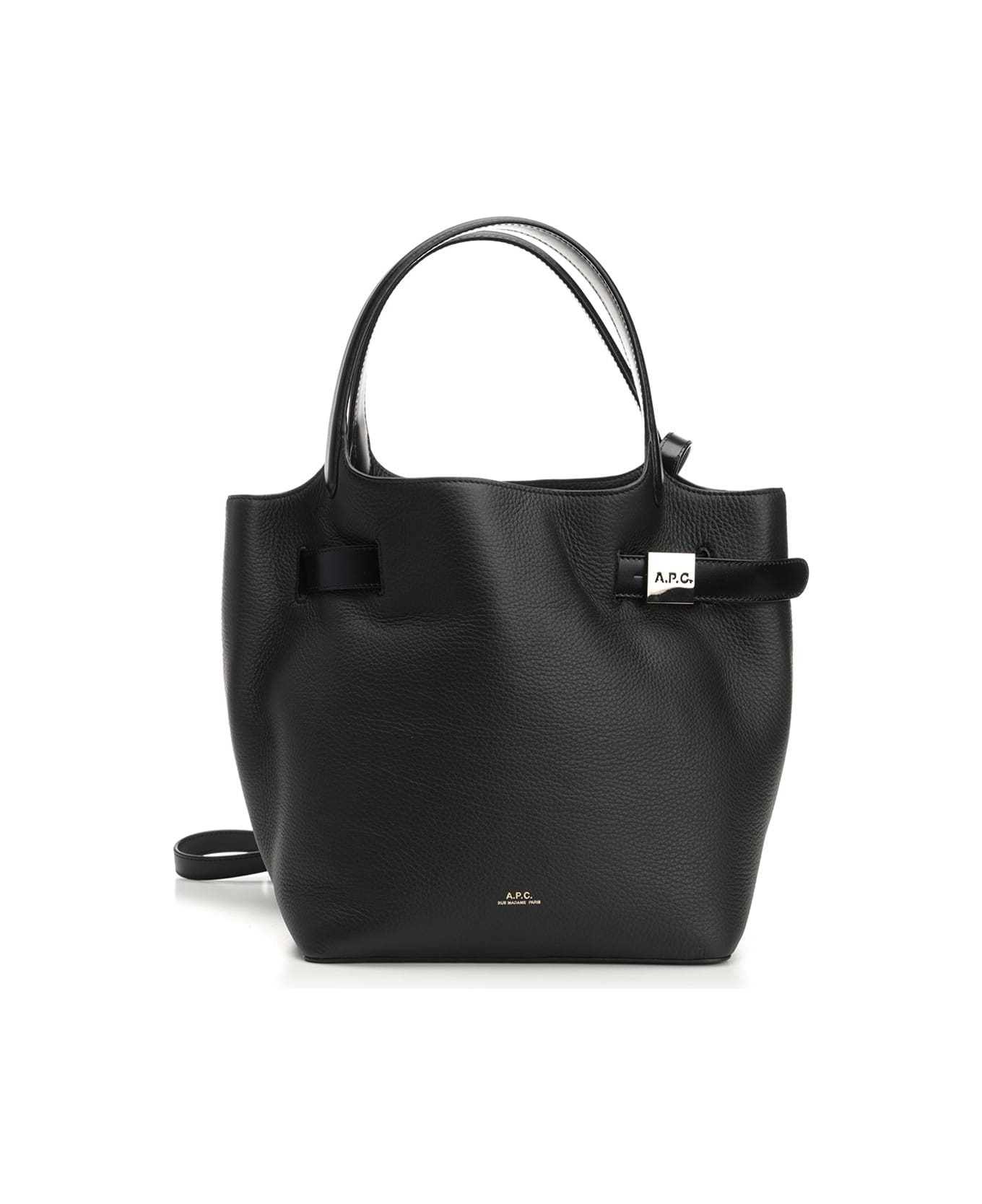 "Daria" trapezoidal bag in black grained leather and smooth leather by A. P. C.. Two handles and a shoulder strap. Metal closure with gold-colored logo.