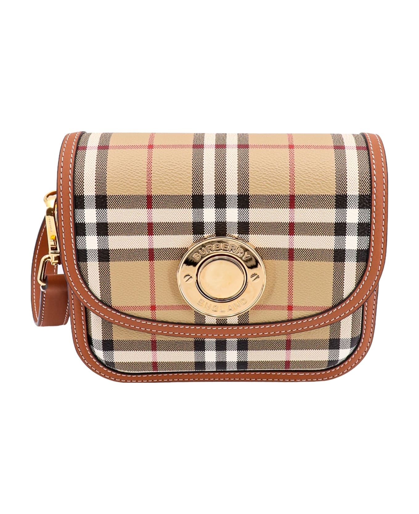 Coated canvas and leather shoulder bag with check motif
