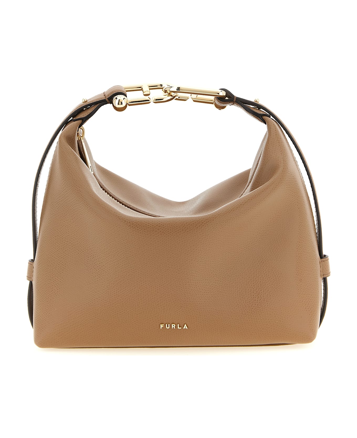 Mignon 'Furla Tonie' shoulder bag in fine grain-effect printed leather, metal logo-shaped details Side arches that can be clipped together to make the handbag, front metal lettering logo, top zip closure, removable short handle, adjustable and removable shoulder strap.