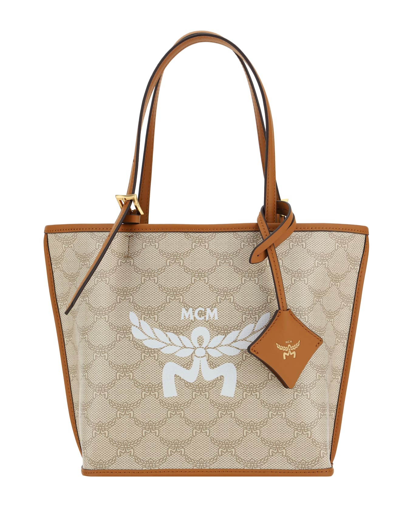Laurel shoulder bag by mcm, two flat top handles, single interior compartment, iconic all-over contrasting brand logo, brand monogram on front, interior pouch Composition: 100% % Polyester