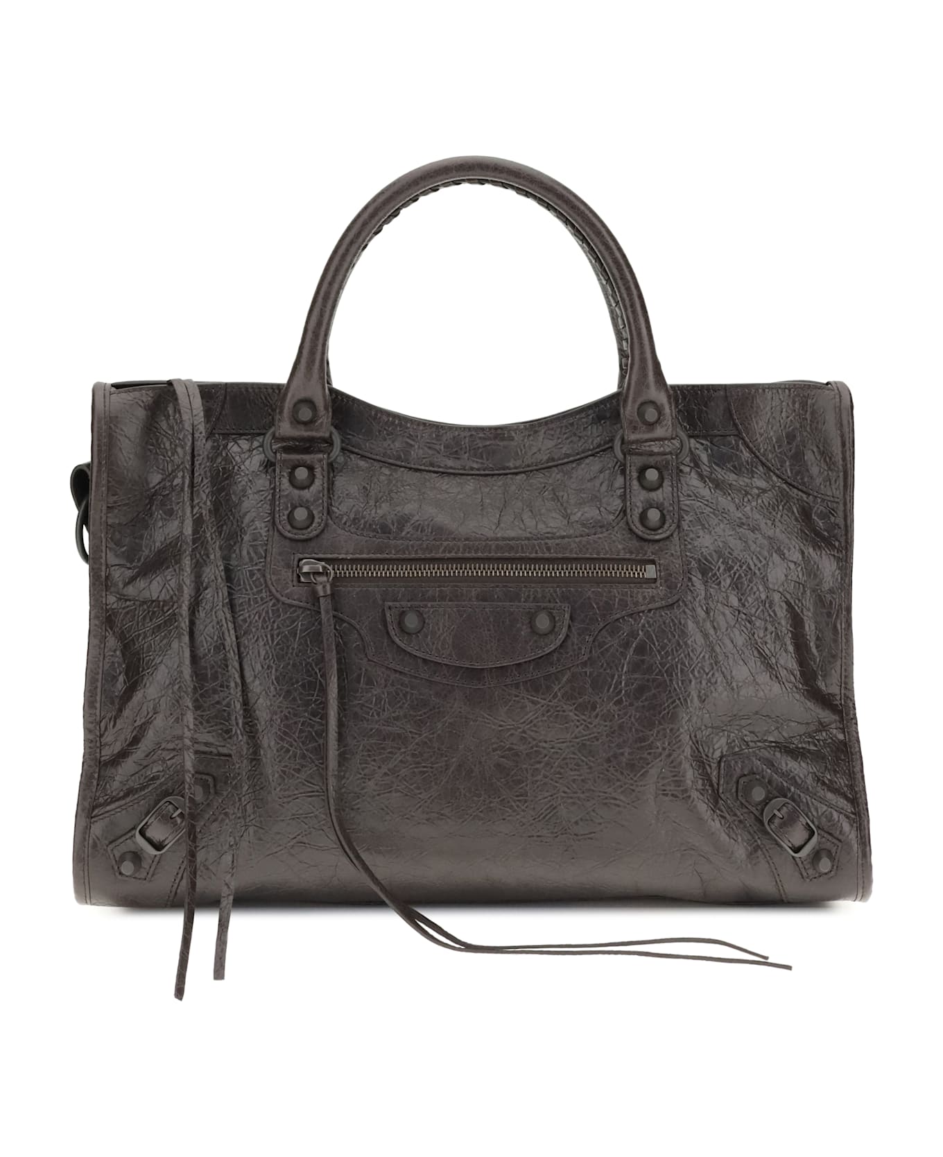 The le city medium shoulder bag by balenciaga is a high-class item made of fine lambskin leather that combines elegance and functionality. the two hand-woven leather handles lend an artisanal and refined touch, while the adjustable and removable shoulder strap allows it to be worn with versatility, either by hand or on the shoulder. the zippered closure and knotted leather zipper pull add distinctive details, while the front zippered pocket offers convenience for quick access to essentials. inside, a zippered pocket and cotton canvas lining provide organization and durability. brass trim completes the look, making this bag a luxurious accessory.