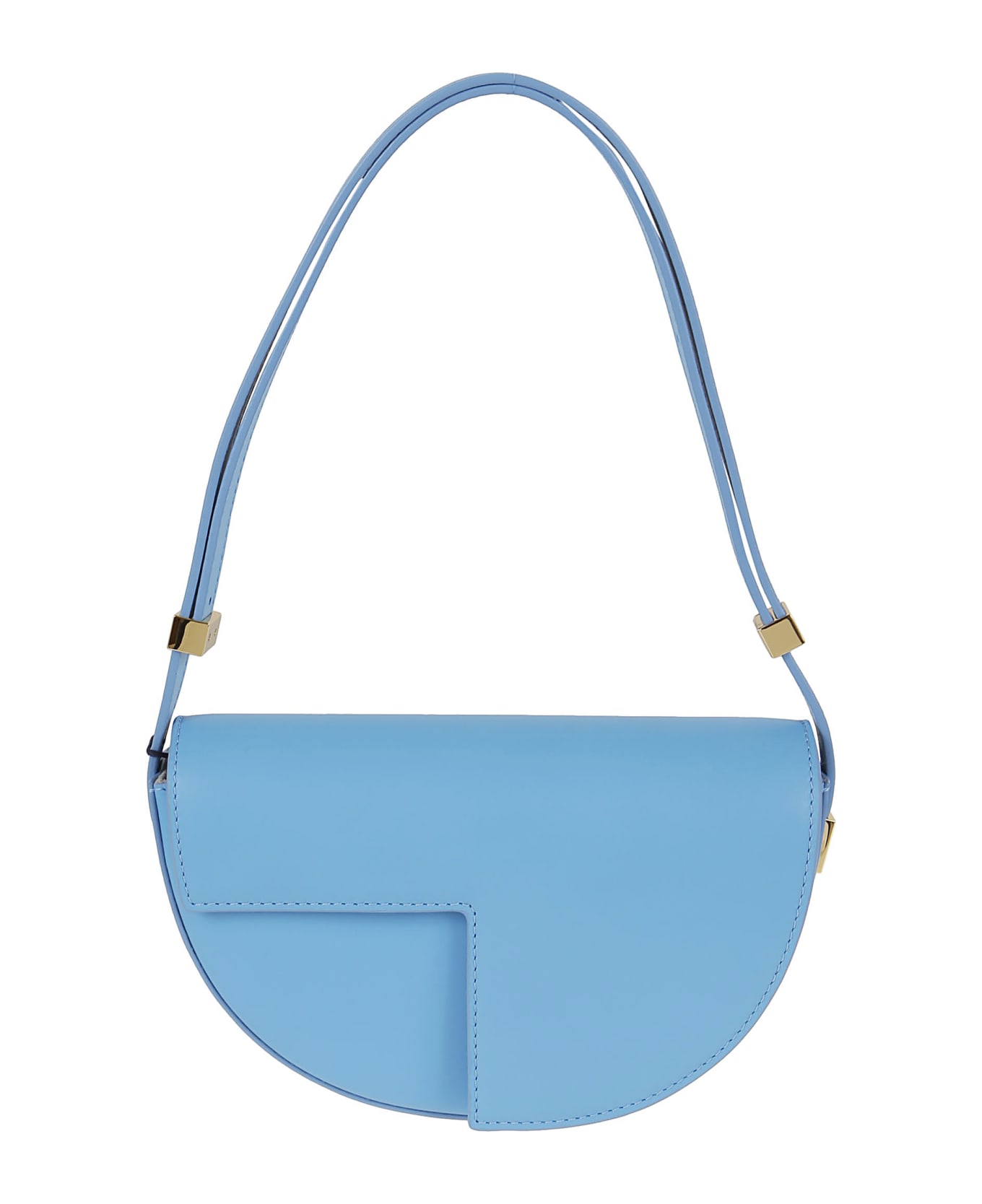 Le Petit Patou bag BY PATOU. Crescent shape with geometric cuts inspired by the JP monogram; magnetic closure with gold JP detail; eco-friendly lining. Patou engraved gold metal detail on the side. It can be carried both over the shoulder and by hand, thanks to the adjustable shoulder strap.