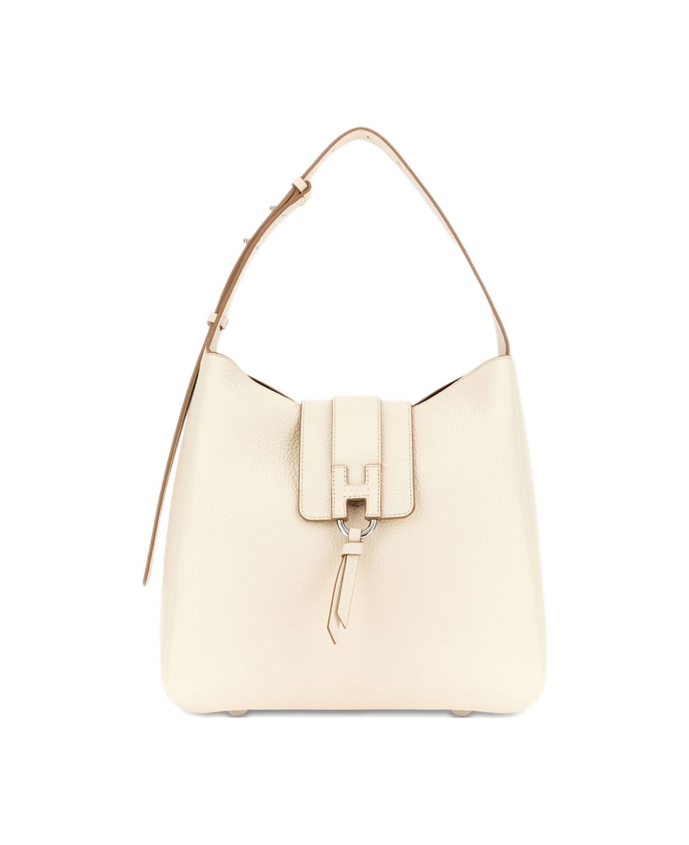 ecru adjustable shoulder strap H buckle ring hardware detail