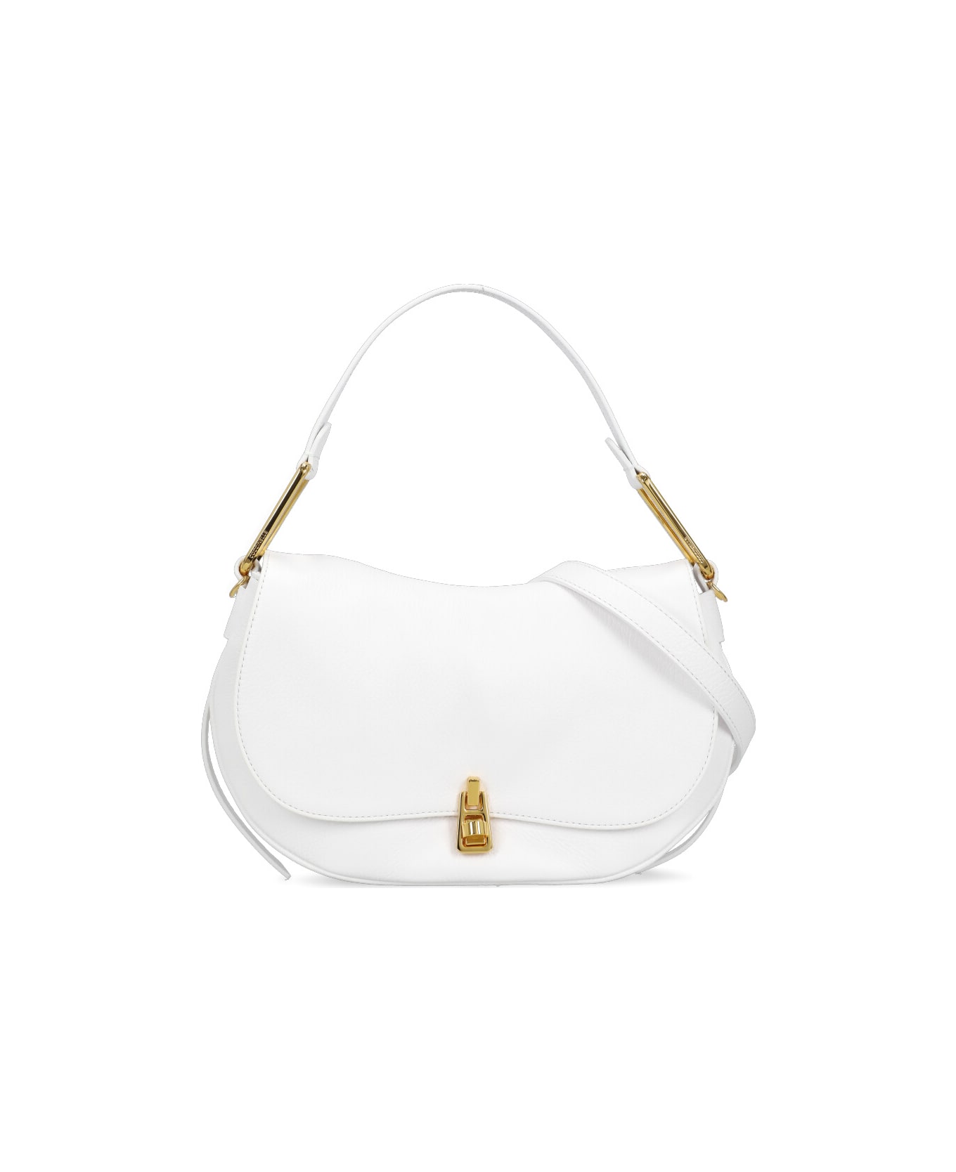 -White Coccinelle pebbled leather shoulder bag for woman - One handle - One adjustable and removable shoulder strap - One main flap compartment with slot fastening