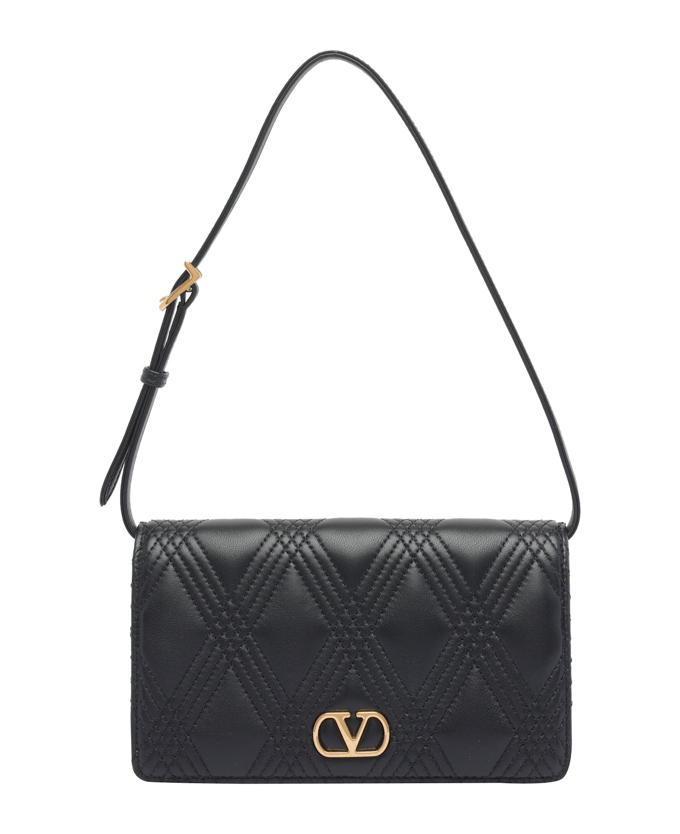 Valentino Garavani black mini logo shoulder bag, magnetic closure, inner zip pocket, 3 slots, adjustable and removable shoulder strap, logo Composition: 100% Calf Leather