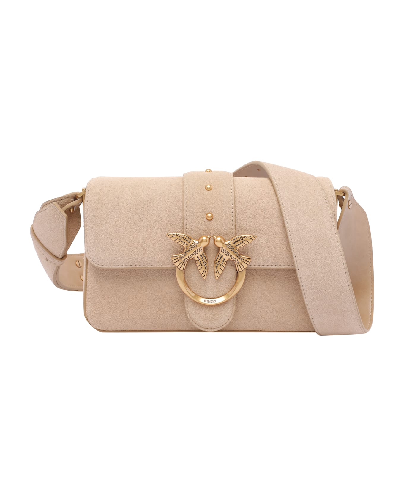 Pinko beige Love One slouchy mini shoulder bag, magnetic closure, inner zip pocket, 2 adjustable and removable shoulder strap, logo Composition: 100% Suede Calf Leather