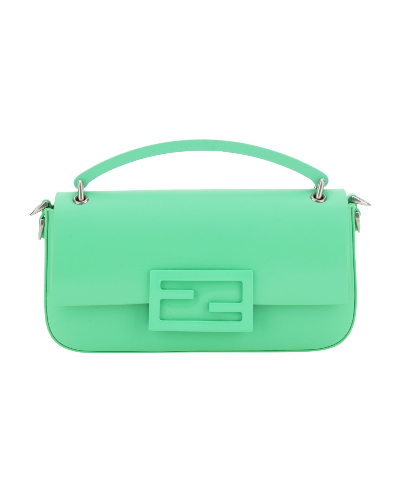 Calfskine Mobile Phone Pouch Baguette By Fendi, Removable And Adjustable Flat Shoulder Strap, A Shiny Leather Effect Design, A Plaque With The Iconic Ff Monogram Appliqu N The Front, A Rigid Top Handle, A Front Closure With A Magnetic Flap, And An Internal Card Slot.