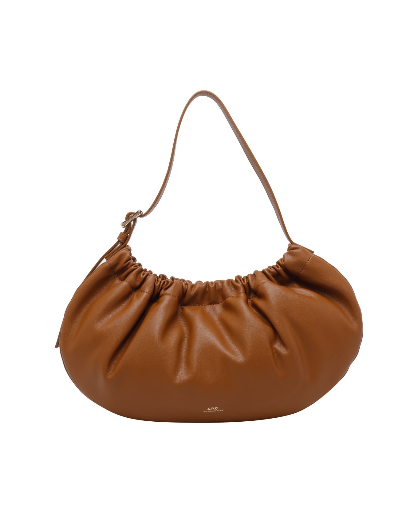 A. P. C. caramel baby Ninon hoop shoulder bag, magnetic closure, inner open pocket, adaptable strap Composition: 5% Calcium Carbonate, 40% Polyester, 55% Polyurethane