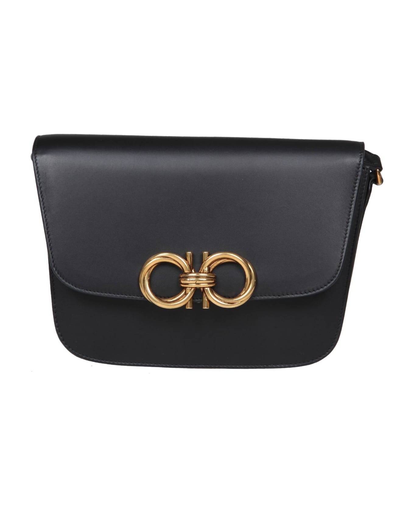Shoulder bag in leather black colour gancini buckle in burnished gold adjustable shoulder strap flap closure two internal compartments one internal slit pocket one back pocket two small internal slit pockets leather interior composition 100% leather measures: width 21. 5cm height 17cm depth 8. 5cm made in italy