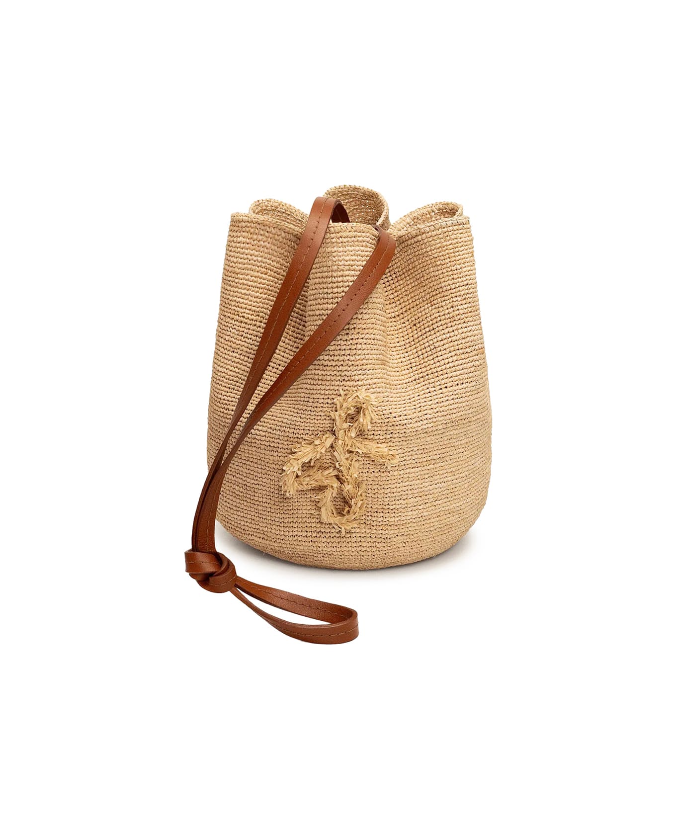 - Made of raffia with cowhide trim - Drawstring closure - Leather shoulder strap - Dimensions: 38 x 21 x 14 cm - Designer color: Natural Straw