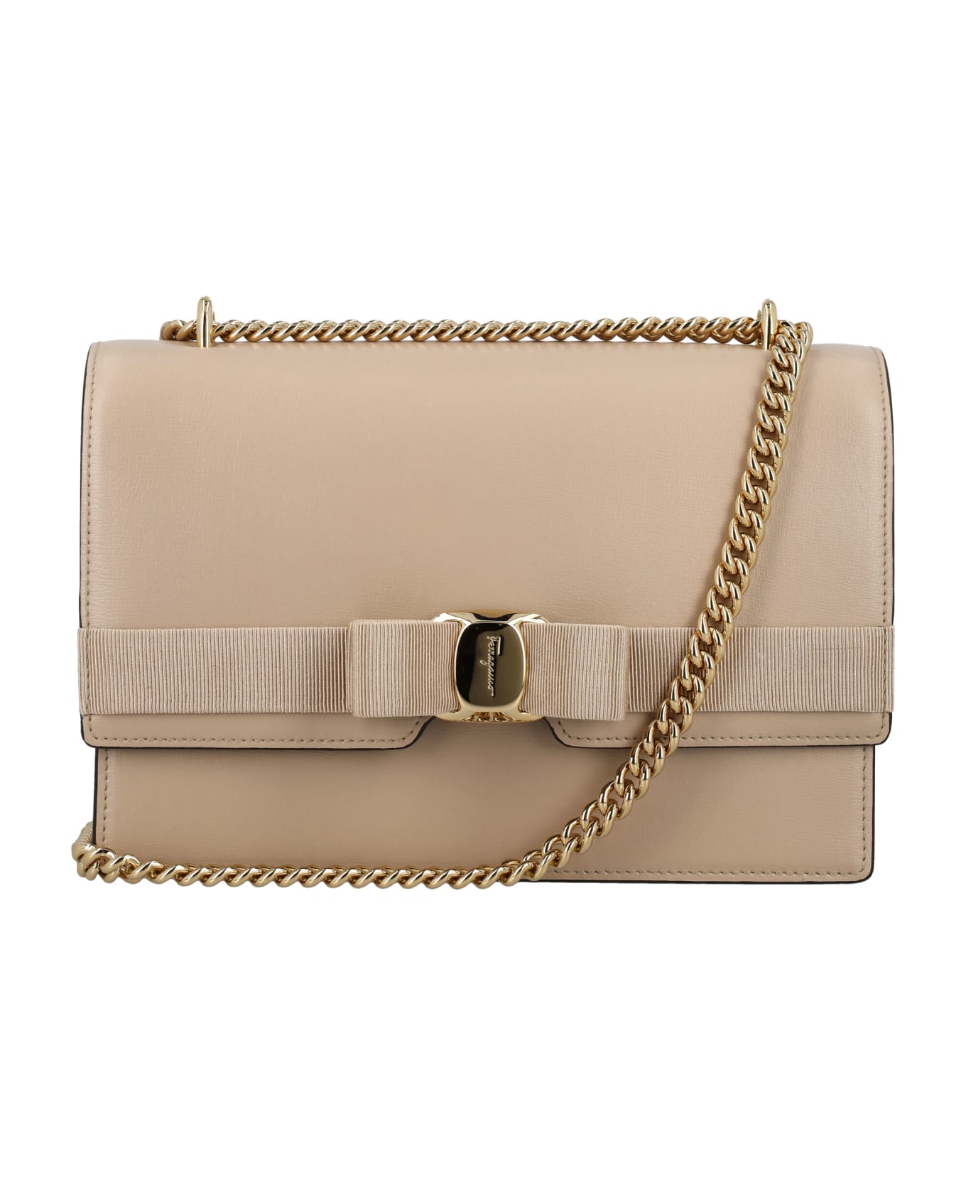 Nappa Leather Vara Gros Grain Bag By Ferragamo. Featuring: Adjustable Chained Shoulder Strap Iconic Tono-on-tone Vara Bow With Gold Signature Plate Press Stud Closure Main Compartment With Multiple Flat Slots Height: 16cm Lenght: 24cm Depth: 6cm